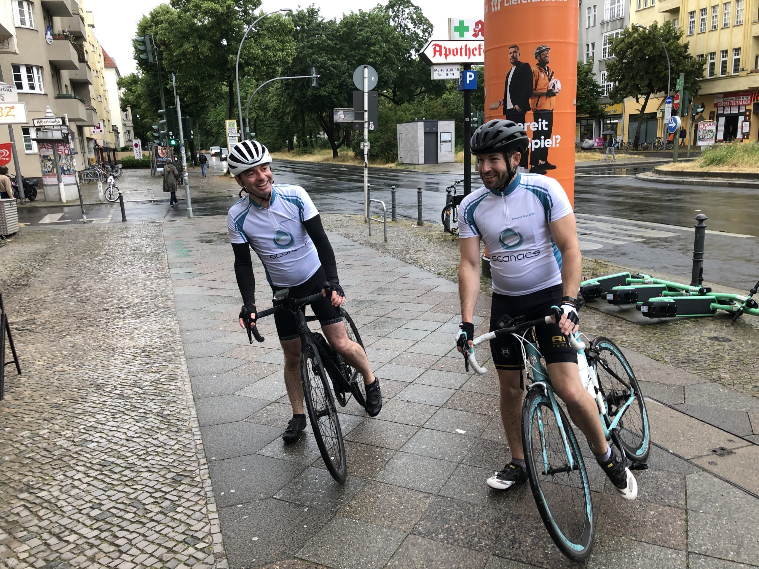 Anlässlich der Einführung des E-Rezepts am 1. Juli 2021 fuhren Frank Böhme, scanacs-Geschäftsführer, und Jörg Weise, Head of Consulting der scanacs GmbH, mit dem Rennrad von Dresden nach Berlin. Entlang der 220 km langen Strecke besuchten sie scanacs-Kund:innen und weitere Wegbereiter:innen für ein digitales Gesundheitswesen, um einfach einmal #DANKE zu sagen. Ziel der E-Rezept-Tour war die gematik GmbH in Berlin, die mit der E-Rezept-App den Grundstein für ein erfolgreichen Start in ein neues, digitales Zeitalter legt.
